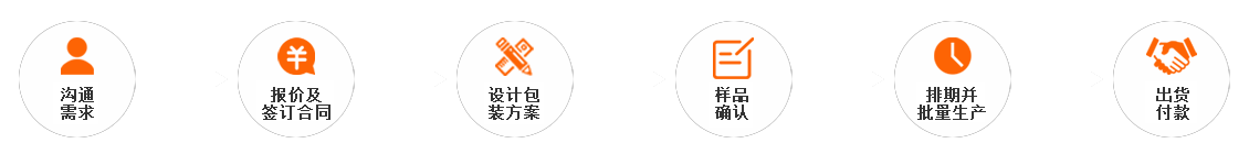 ② 定制流程:客戶下單-溝通制作方案-方案設計-產品打樣 -確定樣品-交貨售后;